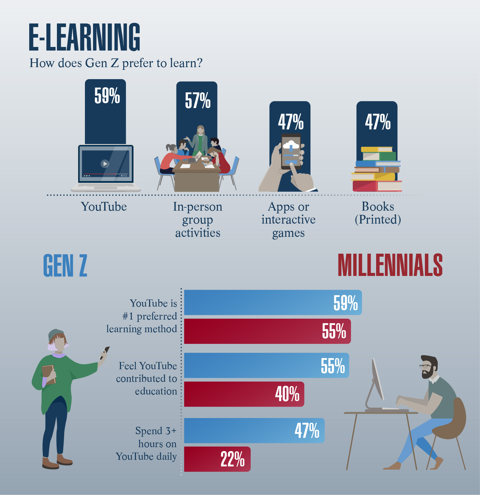 Some 93% of US households with school-age children engaged some form of distance learning during the pandemic, according to the US Census Bureau. We believe such remote learning will persist because there are clear indicators that students prefer e-learning. This inclination was already apparent before the pandemic due to generational shifts: Gen Z favours video-based learning.